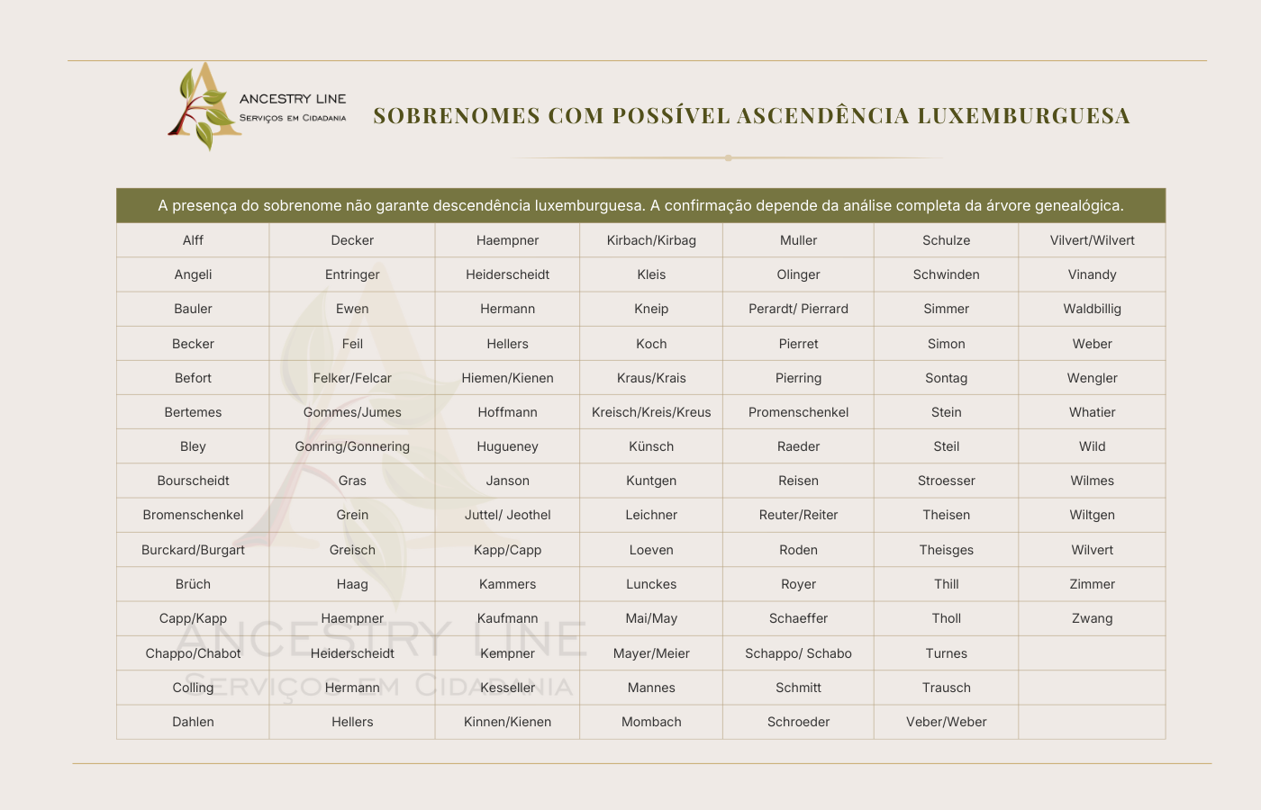 É importante destacar que muitos sobrenomes presentes na lista não são exclusivos de Luxemburgo.